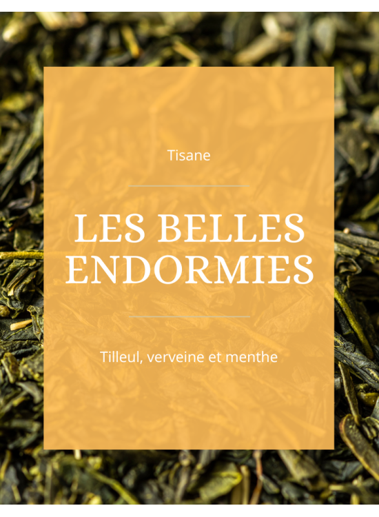 Avec son Mélange d'infusions : Tilleul, Verveine et Menthe, la Tisane - Les belles endormies est votre allié pour de belles nuits. Relaxante et digestive, elle est idéale en fin de repas ou en début de soirée.