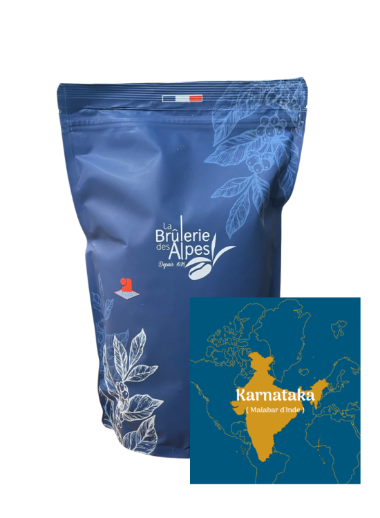 Notre café « Karnataka malabar, Inde », est sélectionné avec soin par l'équipe de La Brûlerie des Alpes afin de toujours vous proposer le meilleur café Karnataka Malabar.